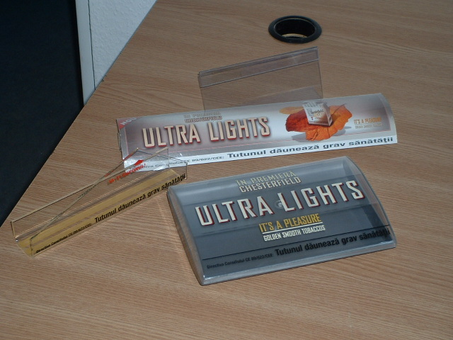 Display–uri termoformate – se pot inscriptiona serigrafic sau cu vinyl pe stiplex transparent termoformat in diverse forme si dimensiuni. Sunt utilizate pentru afisare postere si informatii in spatii comerciale, pentru obtinerea maximului de comunicare a mesajului publicitar sau promotional intr-o maniera profesionala. Aceste display-uri pot fi simple sau cu buzunare, cu expunere pe o fata sau pe ambele fete, cu baza metalica sau din PVC, cu sisteme de fixare cu ventuze, adeziv sau capse si lanturi metalice, dand posibilitatea amplasarii lor atat pe verticala si orizontala, cat si diferite suporturi.