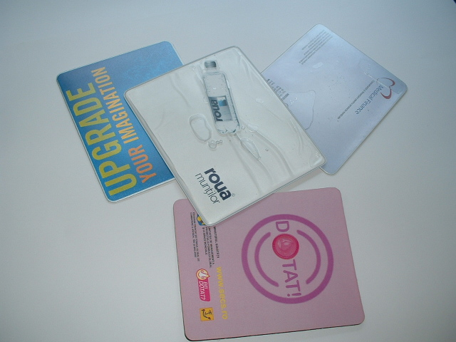 Agende, calendare, pixuri, brichete, brelocuri diverse modele, scrumiere, materiale promotionale de lux, ceasuri, tricouri, sepcute, suporti pentru pahare, cub pentru notite, servetele personalizate, felicitari, pungi de hartie sau normale personalizate, baloane publicitare, esarfe publicitare, mape meniu, cani personalizate, etc.